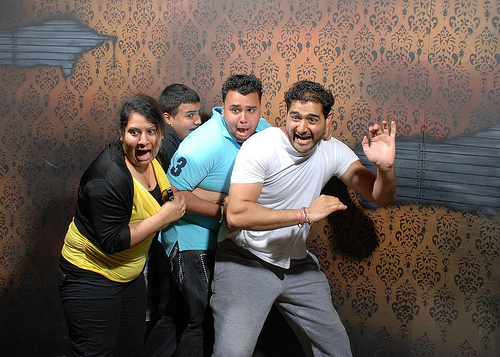 It belongs to the haunted mansion Nightmares Fear Factory in Niagara Falls Canada. In their photostream you have a nice collection of the people having the scariest time of their lives (flickr stream).To have a better idea on how scary this haunted mansion is I urge you to check their hilarious youtube channel!